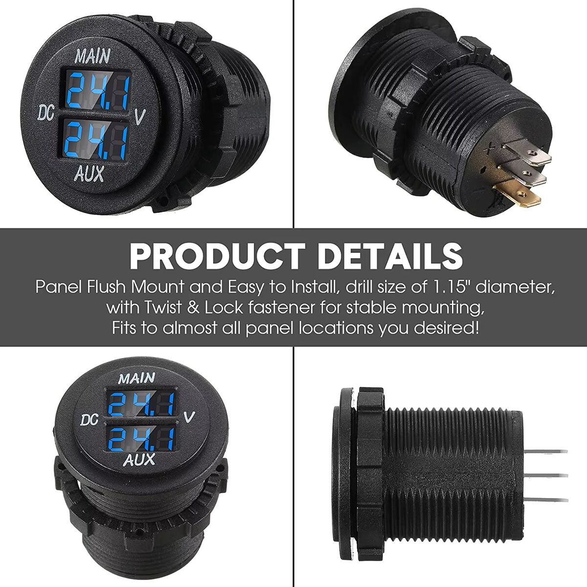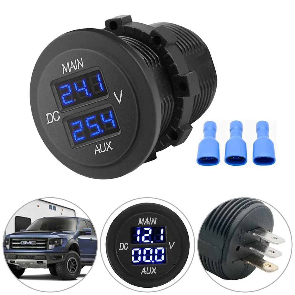 • 12V/24V AUX LED Dual Voltmeter Voltage Gauge Battery Monitor Panel Car Boat RV