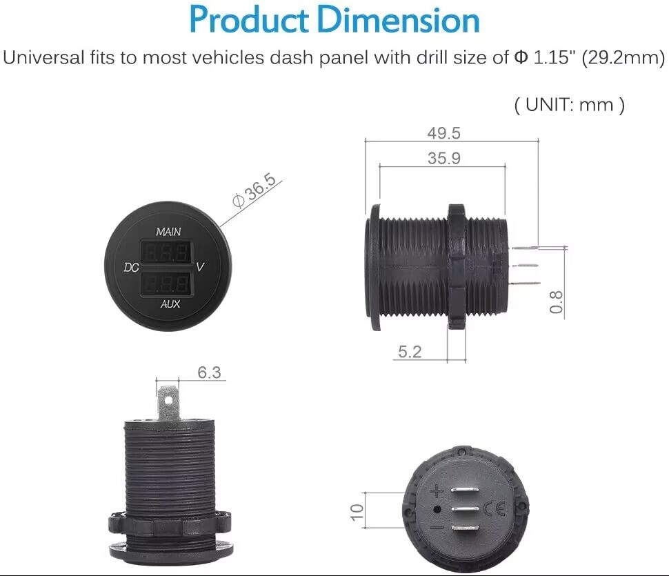 • With dual led digital display, specially designed to test real-time voltage for 2 electrical appliances at the same time, one for main battery and the other for auxiliary one.