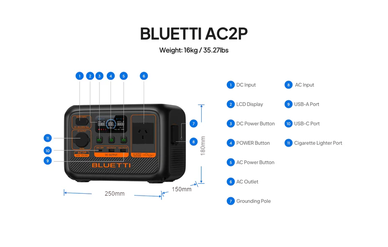 The BLUETTI AC2P Portable Power Station, designed to surpass traditional generators in energy efficiency. With a lightweight build, the AC2P not only lightens your load but also contributes to reducing carbon emissions, making it an ideal companion for your outdoor escapades.