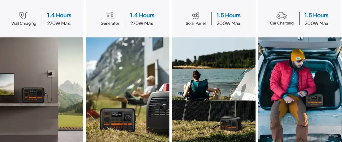 - 6 Ways to Recharge (AC/Solar/Car/Generator/AC+Solar/AC+Adapter)