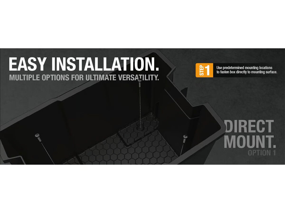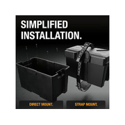 - Installing our battery boxes has never been easier. Utilize the pre-drilled internal pilot holes for direct mounting without a battery strap. Or the all-new strap mount system for more rugged and demanding installations.
