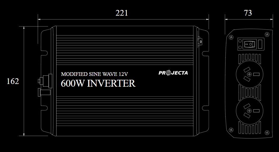 Description    Projecta 12V 600W Modified Sine Wave Inverter