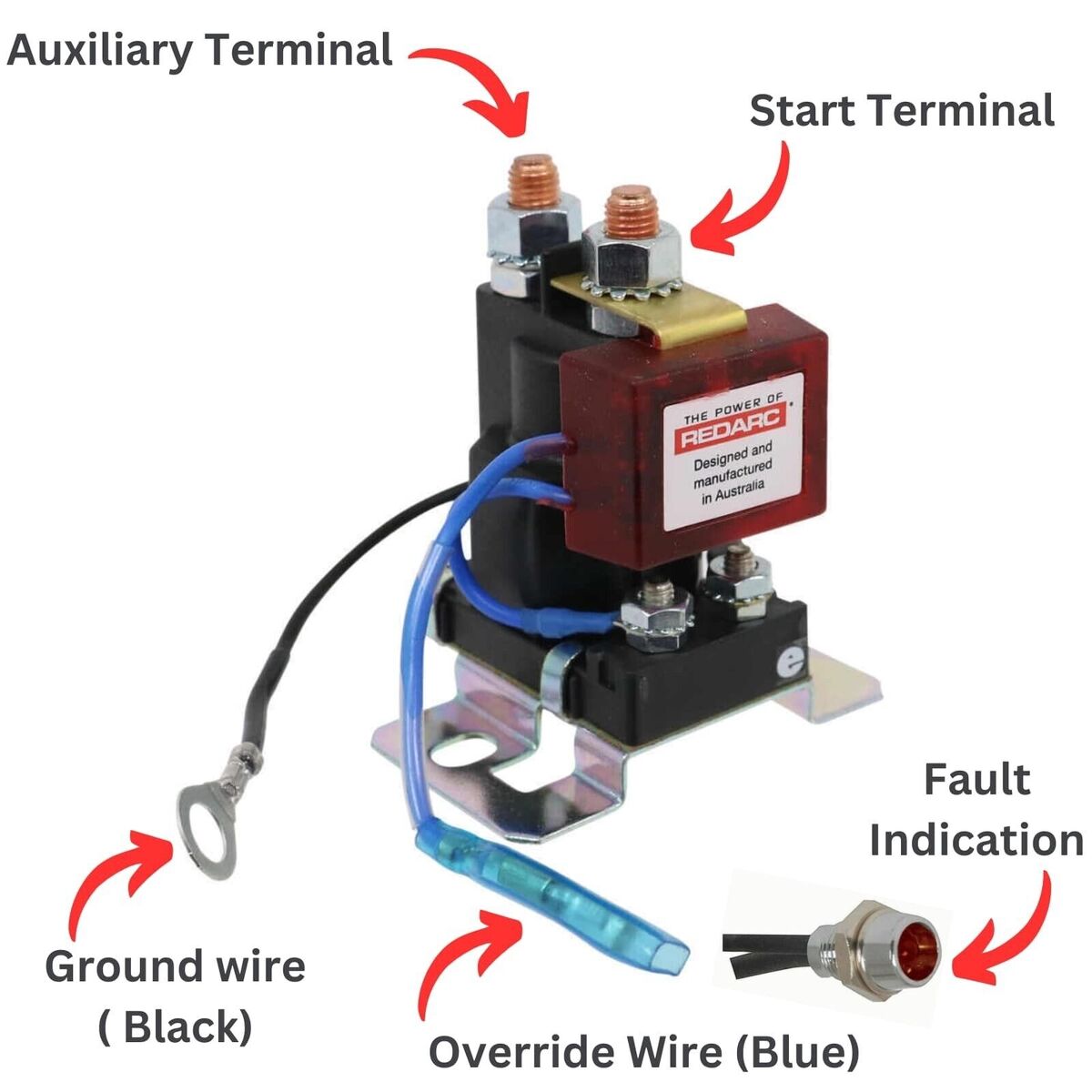The main purpose of this is to allow the vehicle to be started from auxiliary battery if the starter battery is flat. It is recommended that a push button (momentary) switch be used for this.