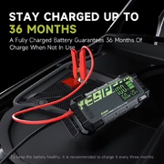 The Jump Starter has an industrial grade nano lithium polymer battery and will retain its charge up to 36 months.