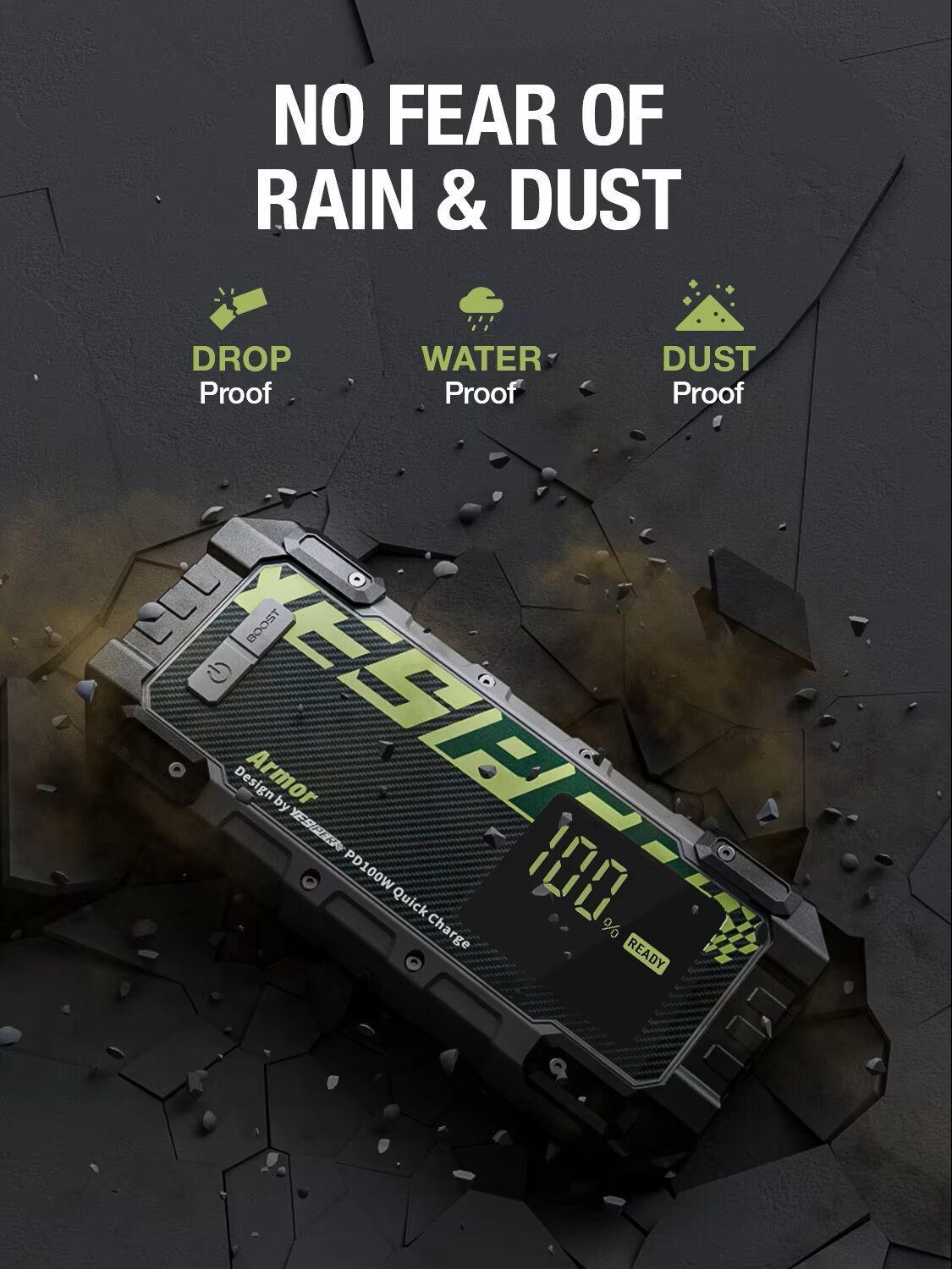 Not only a power bank with automatic jump starter, but the ARMOR jumper pack also comes with: